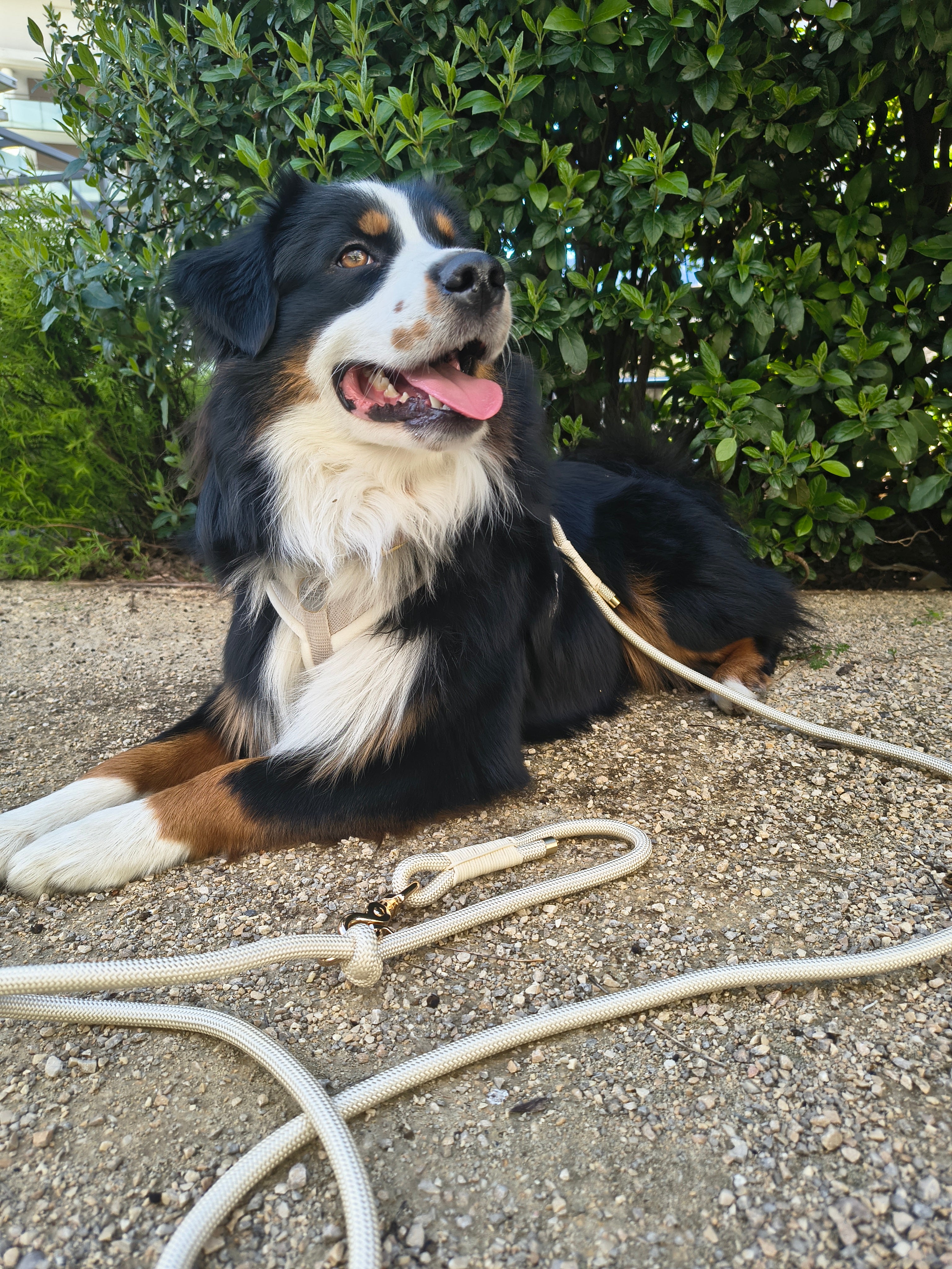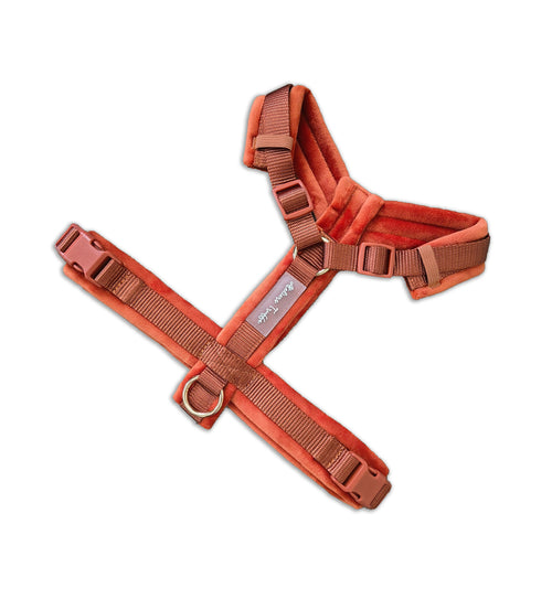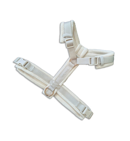 Notre harnais Perle, accompagné de sa laisse assortie.