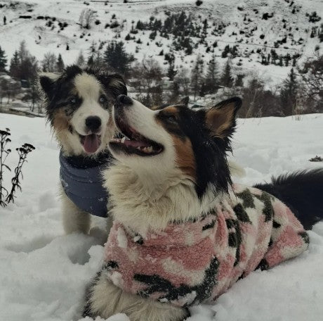 Deux bergers australiens de 3 ans et 5 mois, ils sont les premiers testeurs officiels de la marque.